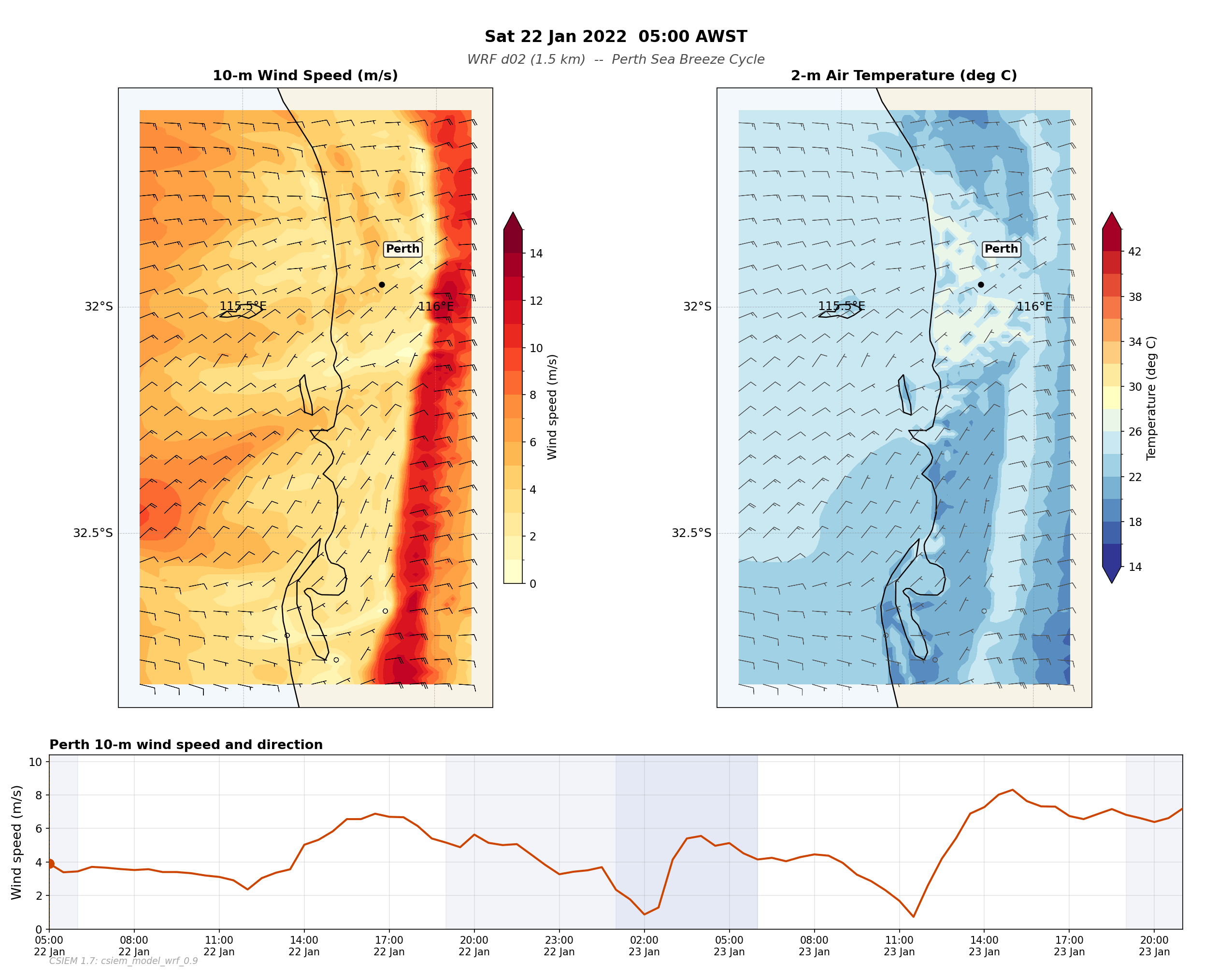 WRF (Weather Research and Forecasting) modelling provides the highest-fidelity option. The WRF configuration developed for CSIEM is called WRF-PERTH, and is described in detail in the following section.